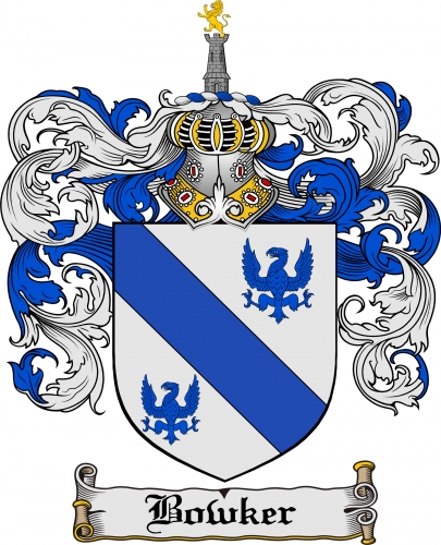 The Bowker Coat of ArmsThe surname of BOWKER was derived from the Old French word 'bochier' an occupational name, a butcher. The name was derived from the Old French word BOUCHIER, and was brought into England in the wake of the Norman Conquest of 1066. Early records of the name mention Ailwardus le Bochere, 1184 London. Alan le Boucher, 1327 County Sussex. William Bourchier of County Somerset, was documented during the reign of Edward III (1327-1377). Thomas le Bouker of Yorkshire, was listed in the Yorkshire Poll Tax of 1379. Jonathan Butcher and Mary Ellen Dosset, were married at St. George's, Hanover Square, London in 1794. Since the dawn of civilisation the need to communicate has been a prime drive of all higher mankind. The more organised the social structure became, the more urgent the need to name places, objects and situations essential to the survival and existence of the social unit. From this common stem arose the requirements to identify families, tribes and individual members evolving into a pattern in evidence today. In the formation of this history, common usage of customs, trades, locations, patronymic and generic terms were often adopted as surnames. The demands of bureaucracy formally introduced by feudal lords in the 11th century, to define the boundaries and families within their fiefdoms, crystallized the need for personal identification and accountability, and surnames became in general use from this time onwards. An eminent member of the name was Samuel Henry Butcher (1850-1910) the Irish classical scholar, born in Dublin. He was educated at Marlborough and Trinity College Dublin, and was elected to extraordinary fellowship at Unicersity College Oxford, and in 1882, he became professor of Greek at Edinburgh. He translated the 'Odyssey' in 1879 and is well known for his work on Aristotles 'Poetics' in 1895. He was the M.P. for Cambridge University from 1906. The associated arms are recorded in Sir Bernard Burkes General Armory. Ulster King of Arms in 1884. from http://www.4crests.com/bowker-coat-of-arms.html